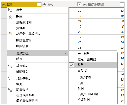 在中心窗格中,右鍵單擊列將顯示可用轉(zhuǎn)換。可用轉(zhuǎn)換的示例包括:從表中刪除列、以新名稱復(fù)制列或替換值。通過此菜單,還可以用常用分隔符將文本列拆分為多個列。