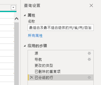 “查詢設(shè)置”窗口列出查詢的屬性和已應(yīng)用步驟。