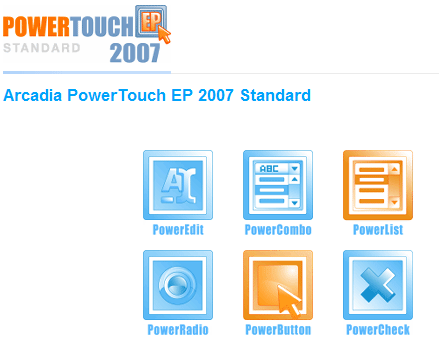 Arcadia PowerTouch EP 2007 Standard 包括 PowerButton,PowerCheck ,PowerCombo,PowerEdit,PowerList ,PowerRadio 六種子控件。