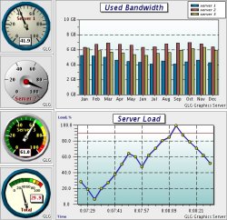 構建 AJAX 儀表盤的另一種方法是在單個 HTML 頁面上組合多個小部件,如 GLG AJAX 儀表盤演示中所示。每個獨立的小部件都使用其自己的服務器端 servlet,并且可以作為可重復使用的組件部署在多個網頁上。