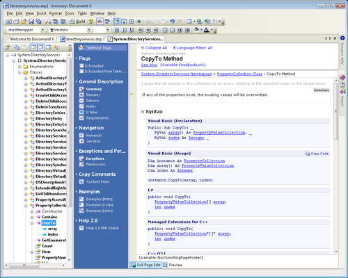 Document! X shortcuts the process of creating and maintaining documentation and context sensitive on-line help for .Net Assemblies, ASP.NET Ajax Javascript, COM components, type libraries and databases schemas. Document! X produces a comprehensive and accurate professional quality documentation set for your components, applications and databases - automatically. Used by leading component vendors including Infragistics, Janus, Data Dynamics, Dundas, SpreadsheetGear and telerik to produce their commercial technical documentation.