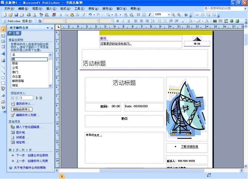 使用 Office Publisher 2007 組合并篩選來自多個源(包括 Office Excel 2007、Office Outlook 2007、Office Outlook 2007 和 Microsoft Office Access 2007)的郵寄列表和數據,以創建個性化的打印材料和電子郵件材料并生成目錄和數據表等自定義宣傳材料。