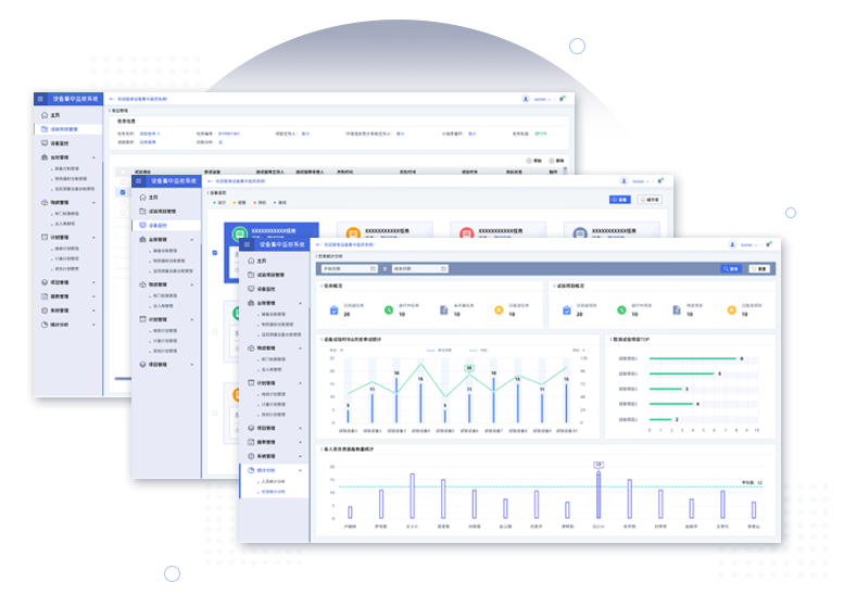 系統可以對項目、計劃、設備、人員、任務等不同維度的數據以圖表的方式進行數據統計與展示, 便于管理人員可以對各項數據進行統計分析。